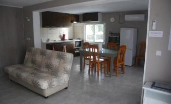 Our two-story house provides a warm and comfortable space for your stay. On the ground floor, a bright and welcoming living area opens up to a fully equipped kitchen, a cozy dining room, and a comfortable lounge area. A spacious shower room offers comfort and convenience.