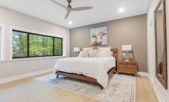 Beautiful new house - very clean and comfortable. The wrap around windows offer beautiful views to the woods around the house. Host could not have been nicer or more responsive. Highly recommend a stay here.