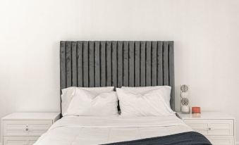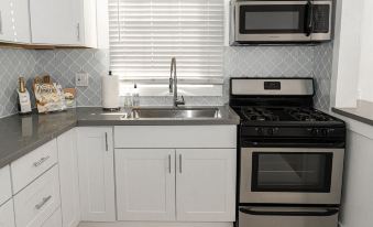 This modern apartment comes with a full kitchen, including quartz countertops throughout.