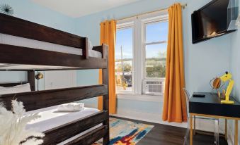 *Bedroom 2: Queen bunkbed & work desk. Top bunk has a weight limit of 200lbs.