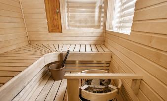 A 150 m² lakeside sauna can be rented separately from April to September, only for full-day use. There are two hot tubs and two spacious saunas, both of which have their own washroom, and a shared spacious living room and small kitchen. The rental price is 600-1000 e, depending on the number of people and how many hot tubs