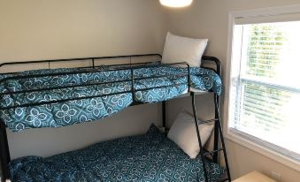 4 bedrooms: 2 bunk beds 1 queen bed and 2 double beds