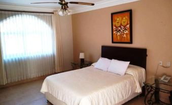 Habitaciones acogedoras, la piscina temporada es lo mejor del lugar, las áreas infantiles bueno para los niños, el restaurante variado y la atención del personal muy amables. La atención a la habitación es súper, buen espacio para los vehículos.