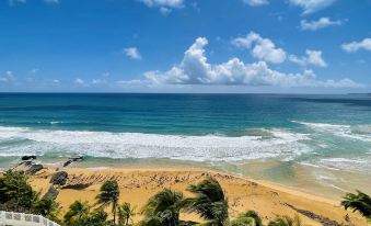 3 bedroom 2 bath Beachfront condo with amazing ocean views. Beach access from the property is a surf beach La Pared other beaches to swim within minutes. walkable to Luquillo's restaurants, bars and shops. Newly renovated clean space for groups of up to 8ppl. Gated & safe complex. 5 min drive to Kiosks and 3 other beaches, 15 min to El Yunque Rain Forest, 15 min to Fajardo beaches, snorkeling, boat & bio bay tours, 20 min to Ceiba ferry to Culebra & Vieques, 40 min from San Juan metro area. Making this location ideal for those who want to explore Puerto Rico!