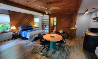 Private studio apartment across deck above garage(queen bed) with bath and shower. Space includes a sink, mini fridge, microwave, coffee maker and bistro table for two.About pets:No pets allowed.About checkOut:Check out before 10:00 AM.About children:Children allowed: ages 0-17.About checkIn:Check in after 4:00 PM.About smoking:Smoking is not permitted.About minBookingAge:Minimum age to rent: 25.About events:No events allowed.