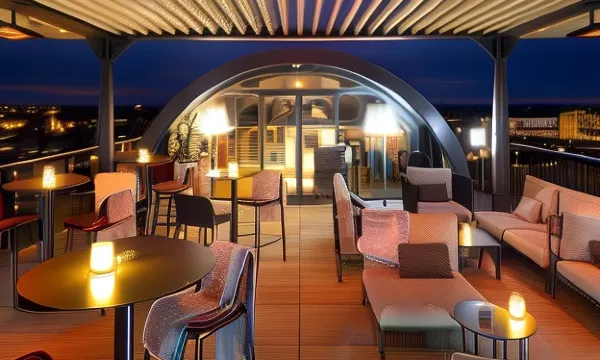The hotel is excellent and the staff are very friendly and helpful. The Sky Bar is a wonderful place to spend an evening with good food and nice wine. Next time, I would definitely request a room at the front of the hotel, as the parking and unloading area at the back gets noisy very first thing with deliveries and bin lorries and we were woken up both days.