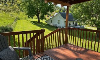My wife and I booked with Amber for a night on our way back home from Gatlinburg as we had a couple of things we wanted to do in Asheville on our honeymoon. She was quick to respond with any questions and was willingly accommodating with a couple of special requests I had. It's located a good distance from the road, on a farm and elevated on a second level. Beautiful decor inside, comfortable bed (major plus) and a beautifully designed bathroom and living area. We both loved our stay and highly recommend this property!