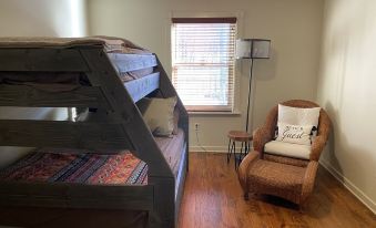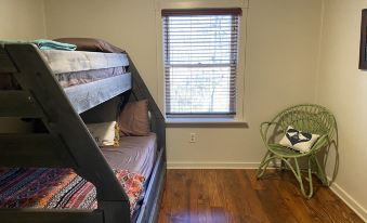 The Natchez Trace Cabin on 5 Acres - updated in Southern Living/Magnolia style decor and furnishings, very quiet and peaceful, private setting with long gated driveway that ensures privacy! Master bedroom downstairs and 2 bedrooms upstairs. Each Upstairs bedroom has a full size bunk bed, twin size upper bunk and twin size trundle bed (sleeps 4). 2 full baths. The sofa in the den is a queen size sleeper sofa! Front Porch, Screened Back Porch with large wraparound deck overlooking a pond! Close to Natchez Trace Walking & Bike Trails, Upper Reservoir Marina, and Turcotte Sporting Clays & Skeet Facility! The perfect getaway for a couple or family!About pets:No pets allowed.About checkOut:Check out before 11:00 AM.About children:Children allowed: ages 0-17.About checkIn:Check in after 4:00 PM.About smoking:Smoking is not permitted.About minBookingAge:Minimum age to rent: 25.About events:Events allowed: family gatherings, birthday parties, weddings.Maximum event attendees: 15.
