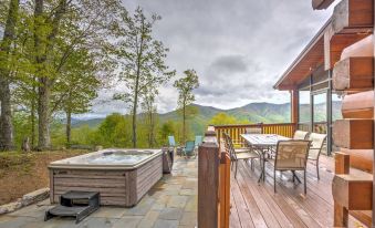 Just when you thought it couldn't get any better, it did. This Luxury Log Home at 3900 ft elevation has it all. Plenty of space for a large family to spread out or a couple to enjoy a romantic getaway. Sit in the new 6-person hot tub or by the outside fire pit and take in the amazing views. Luxurious Master suite and bath on the main floor. Screened in porches to unwind and relax. The gourmet kitchen with gas stove has everything you will need to prepare meals. The upper level of the house offers two spacious, private guest suites. There is also an extraordinary family/recreation room for endless entertainment with ping pong and large screen TV. The great room features a fireplace and expansive windows to take in the scenery. Automatic blinds to keep the sun out when needed. The large flat drive offers plenty of parking for all the guests who will want to stay. Just minutes above the Maggie Valley Country Club and Golf Course (open to the public). About 15 minutes to downtown Waynesville and 35 minutes to Asheville for venturing out. Laundry room in Mud room. About pets:No pets allowed, service animals permitted.Pet fee is per dog..About checkOut:Check out before 10:00 AM.About children:Children allowed: ages 0-17.About checkIn:Check in after 4:00 PM.About smoking:Smoking is not permitted.About minBookingAge:Minimum age to rent: 25.About events:No events allowed.
