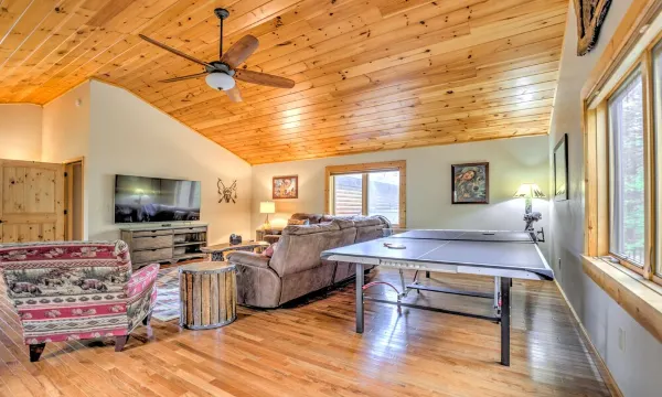 The cabin was very clean and nice. It was the perfect size to fit 8 of us. The ping pong table was a great added touch. The kids loved playing. We really enjoyed our time there. The drive up to the cabin is a little unnerving, so try to arrive before dark. There was plenty of kitchen ware for all our cooking needs. Overall a nice property.