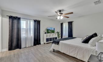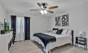 A stunning property completely remodeled with heaps of space indoors and out. Lawn stretches to the lake for perfect relaxation. Easy drive to gardens, and the Tiffany (Morse) museum in Winter Park. Top notch appliances and spacious master bedroom with large walk in closet. The bathrooms are ultra modern and lovely. Great communication with our host.