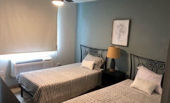 3 bedrooms: 2 single beds 1 queen bed and 1 king bed