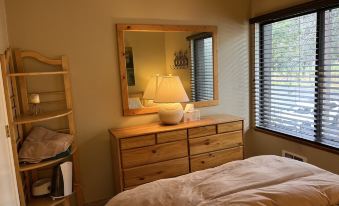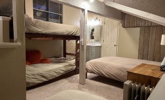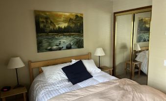 Walk out the parking lot to the bus stop #46 and have a 4 minute bus ride to Eagle Lodge. Buses come every 20 minutes. Enjoy the bedroom downstairs which has a queen bed with a full bath and the large loft/bedroom upstairs which has a full size bed, bunk bed, twin bed, and large TV. This condominium is in an established popular project overlooking the mountain and the Sierra Star Golf Course and close to Vons and restaurants. After a hard day on the snow relax with a short walk to the Lobby, the laundry room, game room, large new sauna and large remodeled jacuzzi. After hiking or skiing, take the bus or walk to Dining or Shopping on Old Mammoth Road. This valued quiet upstairs unit is one of the most popular in the complex with a large Great Room with a charming river rock fireplace. Outside is a ski closet to store your skis and boards and has sleds for the kids to use.