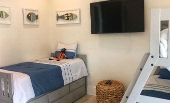 On the second floor from the moment, you step in, you are greeted by top to bottom sliding doors bringing in natural light and water views that will take your breath away. Just past the large sliders you’re invited to curl up on the comfortable outdoor seating for a chat, a quick nap, or even take breakfast, lunch or dinner out to this breezy dining area ready to host many memorable meals. This home has a warm and inviting open concept living, dining and a fully equipped kitchen. Conveniently located between the living and bedroom space, is a washer and dryer area equipped with clean crisp towels for all whom stay. Each of the 5 bedrooms provides families with the privacy they need with their very own on-suites and plenty of closet space for their storage needs. Forward facing bedrooms have connecting balcony space for additional stunning views at any hour of the day.
