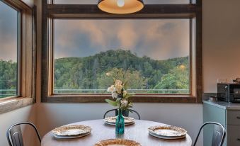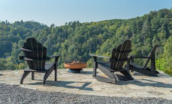 Modern mountain living at it's finest! Enjoy incredible views of the Blue Ridge Mountains and French Broad River from your massive balcony. Kick back and relax by the fire pit overlooking a cliff or soak in the hot tub, glass of wine in hand! We are a short 25 minute drive to Asheville, and centrally located to downtown Marshall. The charming town of Marshall hosts a number of delicious eateries, shops and a brewery along The French Broad River.