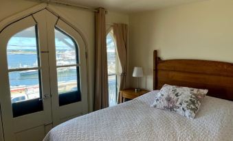 We stayed here for 4 nights, midweek. The location is excellent with a wonderful view of the harbor. Sunsets seen from the balcony were beautiful. The room was clean, bed was comfortable. They do not have breakfast but food and coffee are a short walk away. Our room, #5, faced the street, which may bother some people with traffic noise, but we were not bothered by it; most traffic is gone by 10pm. We were texted when our room was ready were greeted by staff at the front desk when we arrived. She was not always there but gave us a text number to use if we needed something. There is no parking, but there isn't much parking anywhere. We took the bus everywhere, and it's free in the summer, so we didn't need a car. We would definately stay here again.