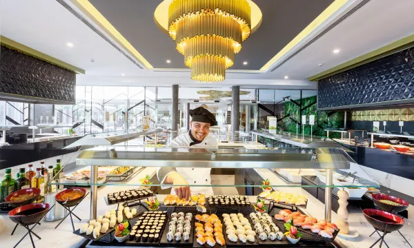 Satisfy your appetite at Promenade, one of the hotel's 3 restaurants. Need to unwind? Take a break with a tasty beverage at one of the 3 bars/lounges. A complimentary buffet breakfast is served daily from 7:30 AM to 10:30 AM.