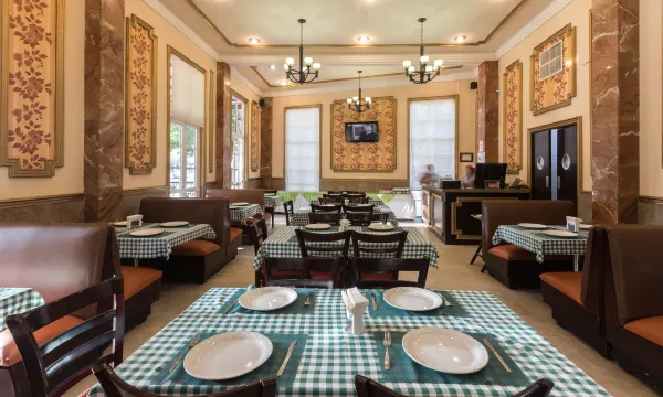 The restaurant downstairs has decent coffee, food was ok, but nothing special. Ok for a quick meal, but not something memorable.