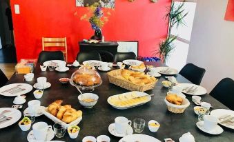 Bon accueil du propriétaire qui se fait par la suite tres discret. La deco des chambres est sympa et c' est assez calme. Petit déjeuner de 8h15 à 9h15... Donc ne traîner pas pour vos vacances ! Surtout pour 1 croissant congelé cuit au four, 1 mini beurre , 1 cuillerée de confiture, 1 moitié de mandarine dans un ramequin, quelques tranches de pain... Le panier repas est trop léger : 1 mini paquet de chips pour 2, charcuterie sommaire, 2 madeleines de supermarché. 2 œufs durs et pas de boissons ! Assez propre dans l ensemble malgre 1 ou 2 toiles d araignées. Dans la salle de bain, boîte de kleenex vide, pas de shampoing, ni savon pour la douche. Et 2 sachets de thé avec une bouilloire, sans sucre et hélas 1 seule tasse pour 2. Et 3 carambars... Je ne recommande pas pour le prix ! Je pense que les box ne sont pas appréciées dans cet établissement, (bien que nous avions pris une nuit supplémentaire.)