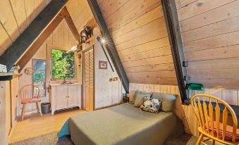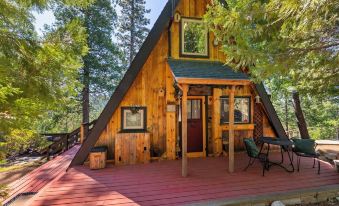 Nestled in Mi-Wuk Village, this charming A-frame cabin is a dream. With a cozy bedroom featuring a king bed and a bathroom with shower and bathtub, guests will turn back the times. The loft with full bed and half bath is accessed by spiral stair. A wood stove provides heat in winter. Escape to this enjoyable retreat and create unforgettable memories reconnecting with each other. Embrace the tranquility of the Sierra and immerse yourself in the beauty of nature sans digital anything (except your own mobile phone).About pets:No pets allowed.About children:Children allowed: ages 0-17.Be responsible. Watch young children..About smoking:Smoking is not permitted.About events:No events allowed.