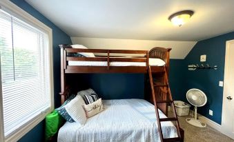 All the beds are dressed in comfy bedding to make your stay restful and relaxing. Extra bedding is available in the closet upstairs and an air mattress is available upon request (just mention it upon check in).