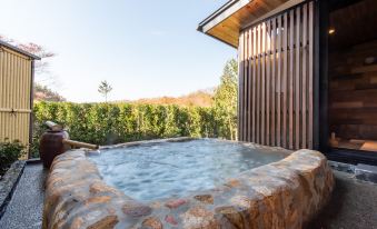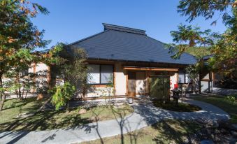 Nestled in the mountains of Oku-Kurokawa Onsen, Miyama Sanso offers a serene retreat. The main building and ten thatched-roof cottages comprise a total of eighteen beautifully appointed guest rooms. Here, nature is left untouched—you can immerse yourself in the sounds of insects and birds, the whisper of the wind, the brilliance of the sun, and the beauty of the setting sun. It is a place where you can experience Japan’s original landscape and spend time away from the ordinary.