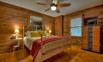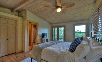 Oscar's Outpost is a great cabin with all the amenities you’ll require for your much-wanted weekend getaway! The open floor plan consists of a great room, complimented by a rustic rock fireplace with a new electric fireplace & a wall of windows that pulls nature in so you feel like you’re sitting in a tree house, a kitchen that overlooks the great room & has plenty of counter & cabinet space. The spacious dining nook has windows on each wall so you can dine & enjoy your picturesque view of the outdoors. The main level offers a king master suite, queen bedroom with bathroom across the hall and the open sleeping loft holds the cabin's third bed and half bath. Step out onto the screened in porch to enjoy the crisp mountain air or walk down to the firepit to toast marshmallows. Oscar's Outpost is a simple but comfortable retreat to enjoy with your loved ones and fur-babies!