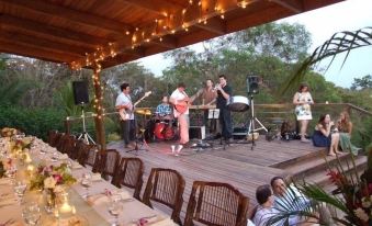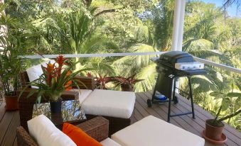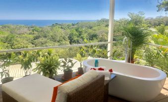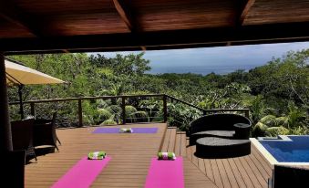 Chez Mu is nestled on a breezy hilltop above Montezuma. The Villa offers tropical luxury at its finest. It has just been remodeled, with a new pool and modern furnishings. The Villa can accommodate a large family or several couples. The home is in the middle of a lush 3.7 acre property, which allows for privacy and tranquility. White faced and howler monkeys, as well as parrots. hummingbirds and many other varieties of birds can be seen on the property. The hilltop setting provides panoramic views of the jungle and ocean, as well as a steady and refreshing breeze (and no mosquitoes!). Plenty of deck space near the pool could become the backdrop for a very special wedding party and is perfect for yoga.