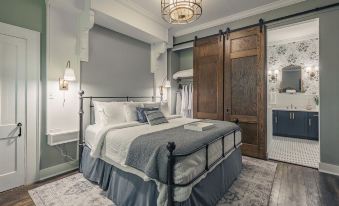 Including antique sliding doors from another school, adding character but don’t fully seal the bedroom and bathroom from each other.