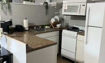This well-appointed studio features a comfortable queen bed and a fully equipped kitchen with a fridge, stove, oven, and microwave—perfect for a quiet meal in. Prefer to dine out? Dozens of local restaurants, cafés, and shops are just steps from your door.