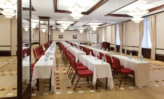 There is a private sports wellness center with a swimming pool, SPA, 24-hour business center. The restaurant and lobby bar offer international and Russian cuisine. The hotel has ten conference rooms with a total area of over 850 sq.m.