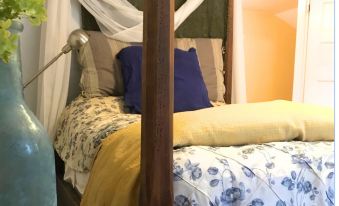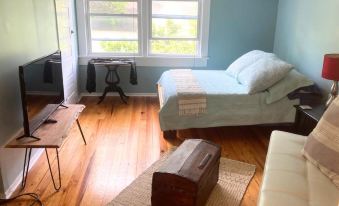 The quaint, light-filled, 1920’s house has heart pine floors in all of the rooms. UNIT 2 on the second floor is a two-bedroom, 1 bath suite. There is a complete micro kitchen fully equipped, and a small eating area. Of the two private bedrooms, one has a desk/study area. The other has a four-poster heart pine bed. The tiled bathroom has been newly remodeled, complete with a meditation alcove. The sunny hall includes a futon available for extra guests. The home is simply furnished with all of the amenities you need in a clean spacious, light-filled environment. The first floor houses an Art Gallery with a grand piano and is not available for overnight stays.About pets:No pets allowed, service animals permitted.About checkOut:Check out before 11:00 AM.About children:Children allowed: ages 0-17.About customRules:Pets are allowed with host approval; such as service dogs, or small dogs with a traveling crate. There will be a 95$ pet fee..Hang the towels after your use.