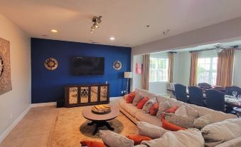 - Great family room with a sectional that seats 8 comfortability. 70' Smart TV with an old fashion freshly made popcorn machine. Plush and relaxing throws for all that visits.