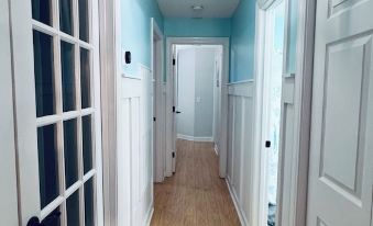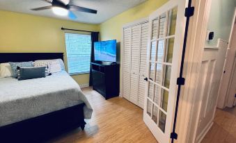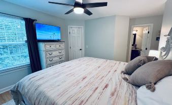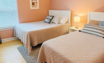 You will find everything easily accessible on the first floor. The master bedroom with a super comfortable king-sized bed, walk-in closet, large TV and ensuite bathroom with a large soaking bathtub. You will find down the hallway 2 more bedrooms one with a super soft bed and the other has a brand new full-sized gel memory foam bed and twin gel memory foam bed. You will also find in the hallway the full bathroom with a large easily accessible walk-in shower. You will also find a beautiful laundry room with front-load washer and dryer with pool towels ready for the pool and beach.