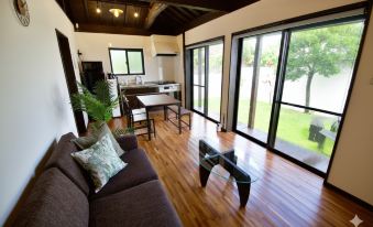 Your Private Okinawan Hideaway – Just 1 Minute from Silvama Beach Escape to a beautifully private villa just steps from the pristine shoreline of Silvama Beach. This tranquil 1LDK retreat combines traditional warmth with modern amenities, offering stunning ocean views, peaceful stargazing nights, and a lush garden with a BBQ grill and parasol table – perfect for unforgettable vacation memories. Whether you're traveling with family, friends, or planning a romantic getaway, this home comfortably accommodates up to six guests and serves as a perfect base for exploring Okinawa's northern gems. Located just 1 hour and 50 minutes from Naha Airport, the journey is well worth the serenity you'll discover. Ideal Base for Exploring Northern Okinawa 20 minutes drive to Junglea Okinawa 10 minutes drive to Churaumi Aquarium 24 minutes drive to Kouri Island Ocean Tower 4 minutes drive to Nakijin Castle Ruins Parking available for 2 cars 7 minutes drive to Supermarkets "KANEHIDE" open from 7am to 11pmHigh power Gas Clothes Dryer good for long stay The Space - Layout: Spacious 1LDK (43㎡) - Capacity: Up to 6 guests - 1 Double Bed - 2 Single Futons - 1 Double Sofa Bed - Children under 6: Stay for free - Parking: Free for 2 cars - BBQ Rental: Complimentary (please bring charcoal) Amenities - Bedroom: 1 Double bed, air conditioning - Living/Dining Room: Sofa bed, dining table & chairs, air conditioning - Kitchen: Refrigerator, gas stove, microwave, cookware, tableware, kettle - Bathroom/Laundry: Bathtub, washer & High-power Gas Clothes Dryer - Essentials Provided: Shampoo, conditioner, body soap, towels, hair dryer, iron Things to Know - Check-in: 3:00 PM - Check-out: 10:00 AM - Facility Type: Unmanned (no room service; message us if consumables run out) - Entire Villa Access: Yours to enjoy 24/7 during your stay - Smoking: Not permitted indoors or outdoors (includes e-cigarettes) - Noise & Conduct: Parties, loud music, and unregistered guests are not allowed - Pets: Not allowed - Cleaning: Guests are responsible for in-stay cleaning - Please note: Smoking or leaving trash may incur a fine. - Check-In/Out Flexibility: Please inquire — early or late may be possible Okinawa locals see geckos as guardians of the home.