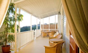 We stayed in this hotel during two nights when travelling through New Zealand. The hotel is looking over Napier, beautiful view during breakfast. Walking down in itself is an experience, walking up even more (if you have the courage). Every corner of this large lodge breaths history and is unique, I believe not one piece of furniture is the same. Rooms and lodge very tidy, very spacious and well kept. Many common areas like the porch(es) garden, large library, kitchen…. Breakfast is made to order and of good homemade quality and good portions. Welcome with pot of coffee or tea and home made cookies, much appreciated. The host is very charming and knowledgeable about the history of the house, New-Zealand, the world and also the weather forecast :-) we liked the conversations we had with her. Only one “remark”: the wild birds can be noisy in the morning ;-) one specific one sang it’s song every morning around 6 LOL I can definitely recommend this lodge when in Napier and want to enjoy a more quiet location rather than the city center.