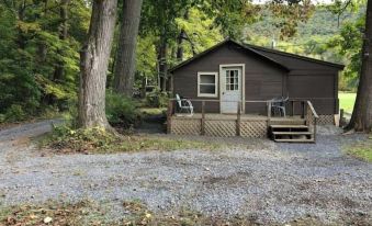 Relax and go for a walk. A cozy cabin by the river with small kitchen and bathroom. Cook out, cook in or eat out. We have fire pits and trails. Downtown Bedford and Shawnee State Park within driving distance.