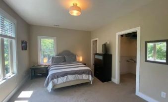 Guests will enter via the lower level side driveway and use the outside stairs to access the second level of the home. This entire level is for guest use which includes your own thermostat, washer/dryer, and also has its own personal balcony/porch with outdoor couches, chairs, propane fire table and a grill. There is also a brand new salt water hot tub located on the bottom level that guests are welcome to enjoy year round.About pets:Pets allowed: dogs and cats less than 50 lbs per pet (limit 2 pets total).About checkOut:Check out before 11:00 AM.About children:Children allowed: ages 0-17.About customRules:We have neighbors so please keep the noise outside to a reasonable level, don't not use the deck after 11 PM on weekdays and midnight on weekends..About checkIn:Check in after 5:00 PM.About smoking:Smoking allowed: in designated areas.About minBookingAge:Minimum age to rent: 18.About events:Events allowed: family gatherings, birthday parties, weddings.Maximum event attendees: 30,Additional Fees Apply to hosting events.
