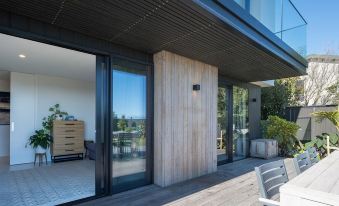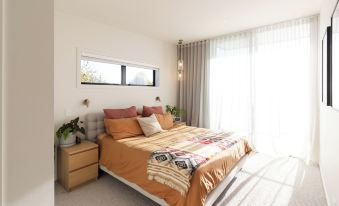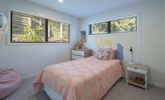 The home comfortably sleeps up to 6 guests with a luxurious master bedroom and ensuite, plus two additional bedrooms each with king single beds and trundlers available if needed. With two bathrooms and thoughtful amenities throughout, this modern retreat blends style, space, and convenience.About pets:Pets allowed: dogs less than 55 lbs per pet (limit one pet total).The house is fully fenced with dog door in laundry.About checkOut:Check out before 11:00 AM.About children:Children allowed: ages 0-17.Stairs may be unsuitable for small children..About checkIn:Check in after 3:00 PM.About smoking:Smoking is not permitted.About minBookingAge:Minimum age to rent: 25.About events:No events allowed.