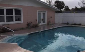 Yes, Beautiful Coastal Beach Home - 2 min walk to Beach- 4 bedroom 3 bath 2 masters! has a swimming pool for guests.