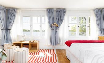 The master bedroom has 3 walls of windows to take in the lake view, a king sized bed, as well as a large comfy chair that is perfect for watching the morning swans or herons - OR - to pull out as a twin bed if you need the extra sleeping space.