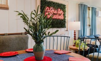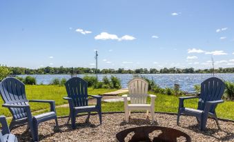This side of the lake is known for its breathtaking sunsets, great fishing, and ample bird watching. The outdoor space has been thoughtfully planned with ample seating around the firepit for sunset s'mores and stories. There's also an outdoor table and seating for 4, as well as an outdoor sofa and chairs - all under a covered porch. You'll have access to outdoor amenities (like 2 kayaks, canoe, cornhole game, washers game, croquet, a telescope, firepit, BBQ) so you can fully enjoy the beauty of being by the lake.