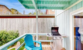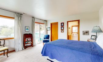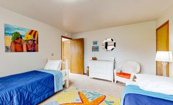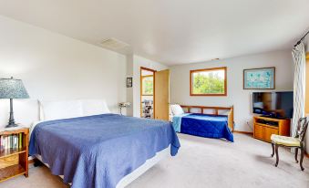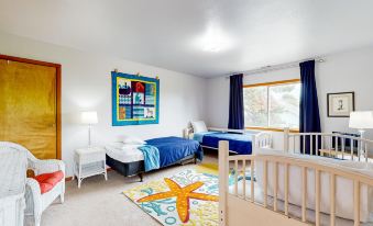The kitchen and dining area are familiar, as if you're staying in a good friend's house. The table seats six, with all the utensils, plates, and glasses you could need to set the table for every meal. You have a full kitchen with ample counter space and important kitchen utilities like a toaster, a coffee maker, and a dishwasher for easy cleanup. The floors move from soft carpet to wood floors, and just out of the dining room, you'll find the door to your patio and fenced-in yard with a grill. Thanks to its thoughtful furnishing and flexible sleeping accommodations, this bungalow is perfect for groups of friends traveling together. For a comfortable, laid-back retreat to the Oregon Coast, you'll feel right at home in the Central Oregon Coast vacation rental.