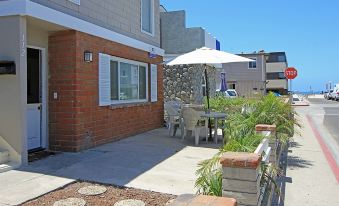 This unit has a roomy front patio with a BBQ, table, chairs and umbrella. The large, shared side patio is great for storing bikes and beach gear. A coin-op washer and dryer used by both units is in the laundry room, just off the patio and there is parking for one car in the single bay garage along with some extra storage.