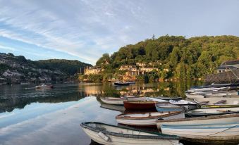 The village has a post office/community stores, pharmacy, co-op open 7 days a week and 3 pubs serving delicious home cooked food. The Dolphin Inn with lovely waterside terrace and cosy log fire is right opposite, the Swan Inn and Ship Inn are the other side of the river in Noss Mayo which you can walk across to on low tide. There is also a cafe/deli at the village green.