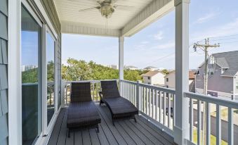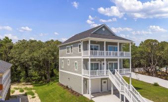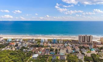 This beautiful new home has gorgeous ocean views, 2 fanned front balconies that cross the front of the house at levels 2 and 3, and large decks at those levels as well. The house is inverted, with the kitchen on and large family room and dining area on the 3rd floor allowing guests to enjoy magnificent ocean views. The 2nd and 3rd floors are accessible by both stairs and an elevator. The home is beautifully furnished and includes too many amenities to list including smart TVs in all 5 bedrooms, as well as the living room and the game room, a cocktail game table with 412 video games, a regulation Skee Ball game for practice before you hit the boardwalk, Yogibo couch and chairs for game play, washer/dryer, and free Wi-Fi among many others. The house boasts two masters, the 3rd floor master includes a king bed with in-suite bathroom and gorgeous tiled shower as well as an ocean view and the 2nd floor master also includes a king bed and beautiful balcony as well as an en-suite bathroom. The 3rd bedroom, also on the second floor, includes a queen bed as well as a bunk bed with a full-size bed on the bottom and a twin bed on top, ideal for kids. This bedroom shares a large Jack and Jill bathroom with the 4th Bedroom which features a beautiful outdoor deck. The 5th bedroom is at ground level and has an in-suite bathroom. Also located at the level is a second refrigerator and small kitchen area. Overall, the home includes 5 bedrooms and sleeps a total of 12+ with 4.5 bathrooms. The house is beautifully furnished and linens, bath towels and beach towels are all available for your comfort and convenience. The house is fully cleaned and sanitized between guests for your safety. The house is in a peaceful quiet neighborhood only 1.5 blocks to the beach (so no driving to the beach and paying to park or getting your car full of sand) with lots of privacy in the backyard which backs up to dunes. The back patio outside the kitchen has a barbecue grill and tables and chairs to dine al fresco. The house is a short trip from the beautiful Myrtle Beach Boardwalk, a variety of gorgeous golf courses for golfers at all skill levels, and near to the Tanger Outlet Mall. The area also offers outstanding dining from steak and seafood, to Italian and of course barbecue, just to name a few. My goal as your host is to ensure that you have everything you and your family need for a wonderful and relaxing vacation in beautiful North Myrtle Beach!!About pets:No pets allowed.About checkOut:Check out before 11:00 AM.About children:Children allowed: ages 0-17.About checkIn:Check in after 4:00 PM.About smoking:Smoking is not permitted.About minBookingAge:Minimum age to rent: 25.About events:No events allowed.