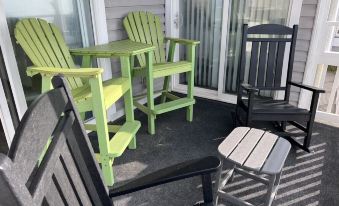 Gorgeous ocean views from the balcony and master bedroom. Enjoy watching dolphins passing by while drinking coffee in the morning and breathtaking sunset views in the evening from our tall Adirondacks or comfortable rockers.