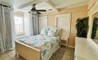 Your friends, family, and fur babies will be steps from the ocean when you stay at this quirky cottage by the sea. We provide everything you need to make your beach vacation a breeze - grill, beach toys, beach umbrella, and even a mini garage for your golf cart rental!