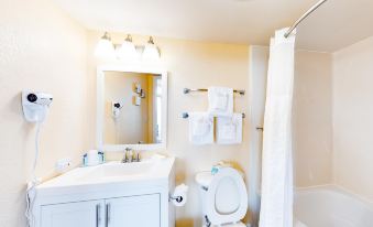 Spread out in comfort and convenience when you book this sun-kissed oceanfront condo for your next vacation to North Myrtle Beach! You'll love waking up with your first coffee while taking in the fresh sea air on the private balcony with ocean views. The free WiFi is perfect for downloading your favorite workout playlists for an hour at the community gym, and you'll have fun exploring all the other on-site amenities, such as the shared pool and hot tub. After an afternoon of sandcastles on a hot summer beach, there's nothing like coming home to bask in the suite's cool central air conditioning while watching a good movie on the TV. You'll even have a full kitchen to prepare a delicious meal for tonight's dinner guests!