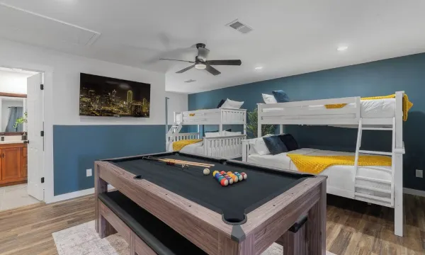 ♛ Bedroom 4: Two Bunk Beds (Twin Beds over Queen Beds), Pool Table, Ensuite Bathroom